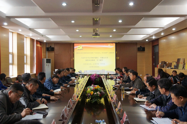學(xué)院常務(wù)副院長(zhǎng)董平主持學(xué)習(xí)輔導(dǎo)報(bào)告時(shí)指出,今年7月15日至16日,習(xí)近平總書(shū)記深入考察內(nèi)蒙古,尤其是總書(shū)記親臨考察內(nèi)蒙古大學(xué),對(duì)學(xué)校建設(shè)發(fā)展做出重要指示,充分體現(xiàn)了總書(shū)記和黨中央對(duì)邊疆民族地區(qū)發(fā)展和高等教育建設(shè)的親切關(guān)懷,為我們貫徹黨的教育方針和民族政策、植根中國(guó)大地、祖國(guó)北疆,建設(shè)特色鮮明的一流大學(xué)提供了行動(dòng)指南。為民部長(zhǎng)對(duì)總書(shū)記的重要講話和重要指示精神挖掘得很深,整場(chǎng)報(bào)告帶著真情和一種自豪感來(lái)分享,報(bào)告全面深刻、點(diǎn)面結(jié)合、論據(jù)充分、論點(diǎn)鮮明,是我們學(xué)習(xí)貫徹習(xí)近平總書(shū)記考察內(nèi)蒙古重要講話和重要指示精神的重要輔導(dǎo)學(xué)習(xí)材料。當(dāng)前正值“不忘初心、牢記使命”主題教育深入開(kāi)展之際,全院各基層黨組織和廣大黨員干部要按照總書(shū)記“抓思想認(rèn)識(shí)到位、抓檢視問(wèn)題到位、抓整改落實(shí)到位、抓組織領(lǐng)導(dǎo)到位”的要求,深刻學(xué)習(xí)領(lǐng)會(huì)習(xí)近平總書(shū)記重要指示精神,繼續(xù)深入扎實(shí)開(kāi)展好主題教育,真正做到理論學(xué)習(xí)有收獲、思想政治受洗禮、干事創(chuàng)業(yè)敢擔(dān)當(dāng)、為民服務(wù)解難題、清正廉潔作表率。