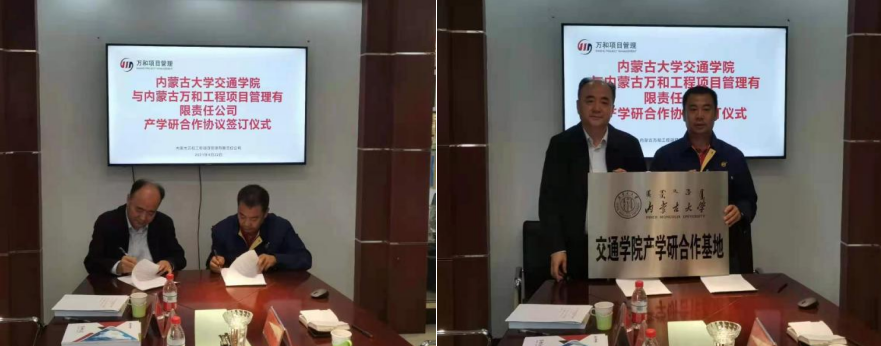 會議上,雙方還舉行了產(chǎn)學研合作協(xié)議簽訂和授牌儀式。我院與內(nèi)蒙古萬和項目管理有限公司高質(zhì)量校企合作正式啟動。