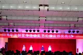 頒獎晚會一共分為兩個部分,第一部分為宣傳月中所有的優(yōu)秀作品的展示及表彰,第二部分是同學(xué)們精心準(zhǔn)備的各種法制文藝節(jié)目,頒獎晚會持續(xù)兩個多小時,給學(xué)們留下了深刻的印象。