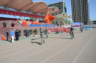 內(nèi)蒙古大學副校長張吉維,內(nèi)蒙古大學黨委委員、交通學院黨委書記孫智憑,內(nèi)蒙古陸軍預(yù)備役步兵第30師副參謀長王磊、軍務(wù)科長孟昭輝,內(nèi)蒙古大學黨政辦副主任溫毅剛、保衛(wèi)處副處長金山;內(nèi)蒙古大學交通學院常務(wù)副院長董平,黨委副書記、紀委書記白托婭,副院長孫恒,副院長武鈞,黨委委員、教務(wù)處處長趙志蒙以及相關(guān)職能部門負責人、系部黨總支負責人出席開幕式并在主席臺就坐。我院師生2300余人參加了開幕式。