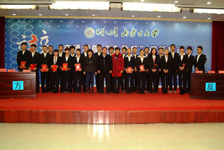 學院學工處副處長、團委副書記高飛(右)、 組織宣傳科副科長董小紅(左) |