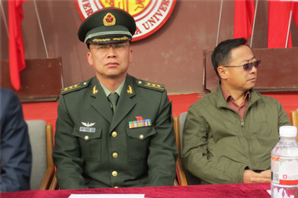 內蒙古陸軍預備役第30師副參謀長王磊上校 (左)、學院常務副院長董平 學校黨政辦副主任、南校區(qū)管委會辦公室主任方麗英