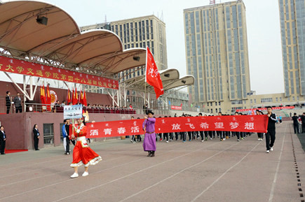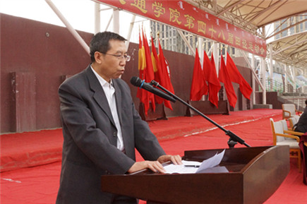 黨委副書記、紀委書記白托婭代表學院黨政領導致開幕詞。她說,一年一度的田徑運動會是學院貫徹“立德樹人”教育思想,全面落實素質教育,響應團中央“走下網(wǎng)絡、走出宿舍、走向操場”倡議的重要載體,是對全院群眾性體育工作成果和師生員工運動水平的一次檢閱,也是對廣大師生員工競爭意識、團隊精神、頑強意志的一次考驗,更是全院師生員工精神風貌的一次全面展示,已經(jīng)成為校園生活的重要組成部分。高等學校作為國家高層次人才培養(yǎng)的重要基地,同學們的體質與健康事關國家和民族的未來。她號召大家,要以此次運動會為契機,繼續(xù)廣泛開展“陽光體育”,積極倡導“三走”,多種方式加強校園體育文化建設,積極營造人人關心、人人參與體育活動的氛圍,我們堅信,在學校黨委和學院黨委的堅強領導下,我院全體師生員工將以更加健康的體魄,更加昂揚的姿態(tài),更加飽滿的熱情投入到學院各項事業(yè)的建設中來!