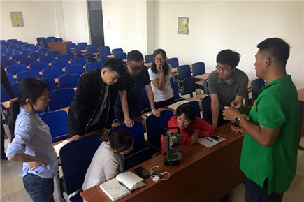 本次培訓(xùn)邀請道路工程系青年教師姚林虎老師和橋梁工程系青年博士姚亞東主講。姚林虎老師運用豐富的工程實踐經(jīng)驗分別從選線、測角、中樁、水平、橫斷、橋涵、地質(zhì)、內(nèi)業(yè)等八個方面講述了道路勘測設(shè)計原理和教學(xué)實踐的基本內(nèi)容及要求。姚亞東博士從測繪和測設(shè)兩方面詳細介紹了工程測量的基本原理和全站儀、經(jīng)緯儀、水準(zhǔn)儀的實踐操作方法。兩位老師在培訓(xùn)現(xiàn)場親自為參訓(xùn)教師演示了儀器操作規(guī)程,并輔導(dǎo)大家動手進行了相關(guān)操作。