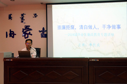 2018年6月20日下午,學(xué)院在交通樓A351會(huì)議室舉辦2018屆畢業(yè)生廉政教育專(zhuān)題講座--《崇廉拒腐,清白做人,干凈做事》,學(xué)院2018屆畢業(yè)生代表80余人聽(tīng)取了講座。