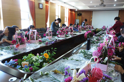 為慶?!叭ぐ恕眿D女節(jié),進一步提升女教職工生活藝術(shù)審美情趣,激發(fā)活力、凝聚力、創(chuàng)造力及向心力,3月6日下午,學院工會在交通樓A439室組織開展了插花藝術(shù)講座和“詩情花藝、馨香教苑”插花比賽活動,共有30名女教職工參加。學院黨委副書記、紀委書記白托婭代表學院黨委向全院女教職工致以節(jié)日的祝福。