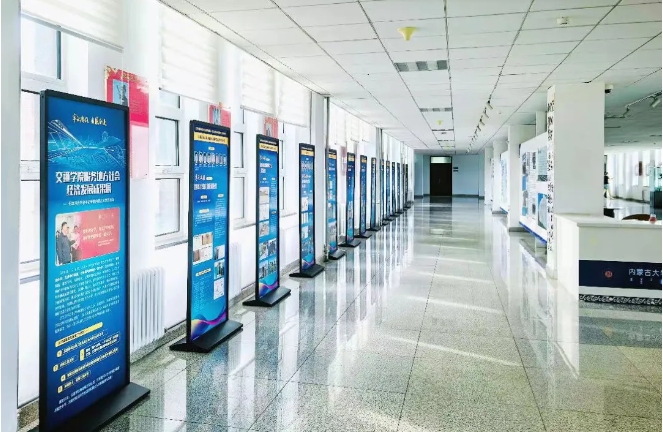 展區(qū)位于交通樓三樓校史展廳長廊,共計14塊展板。展覽以服務(wù)北疆基礎(chǔ)設(shè)施工程為主分為5大系列,分別是:凍害診斷與防治技術(shù)系列;橋梁工程系列;面向“兩個屏障、一個橋頭堡”的智慧交通、交通安全和口岸物流研究系列;智能交通載運裝備與寒區(qū)機械裝備安全服役關(guān)鍵技術(shù)系列;環(huán)境巖土、道路工程系列。集中展示了我院近五年來在團隊建設(shè)、科技創(chuàng)新、社會服務(wù)、成果轉(zhuǎn)化等方面取得的顯著成效。展覽將持續(xù)數(shù)月時間。