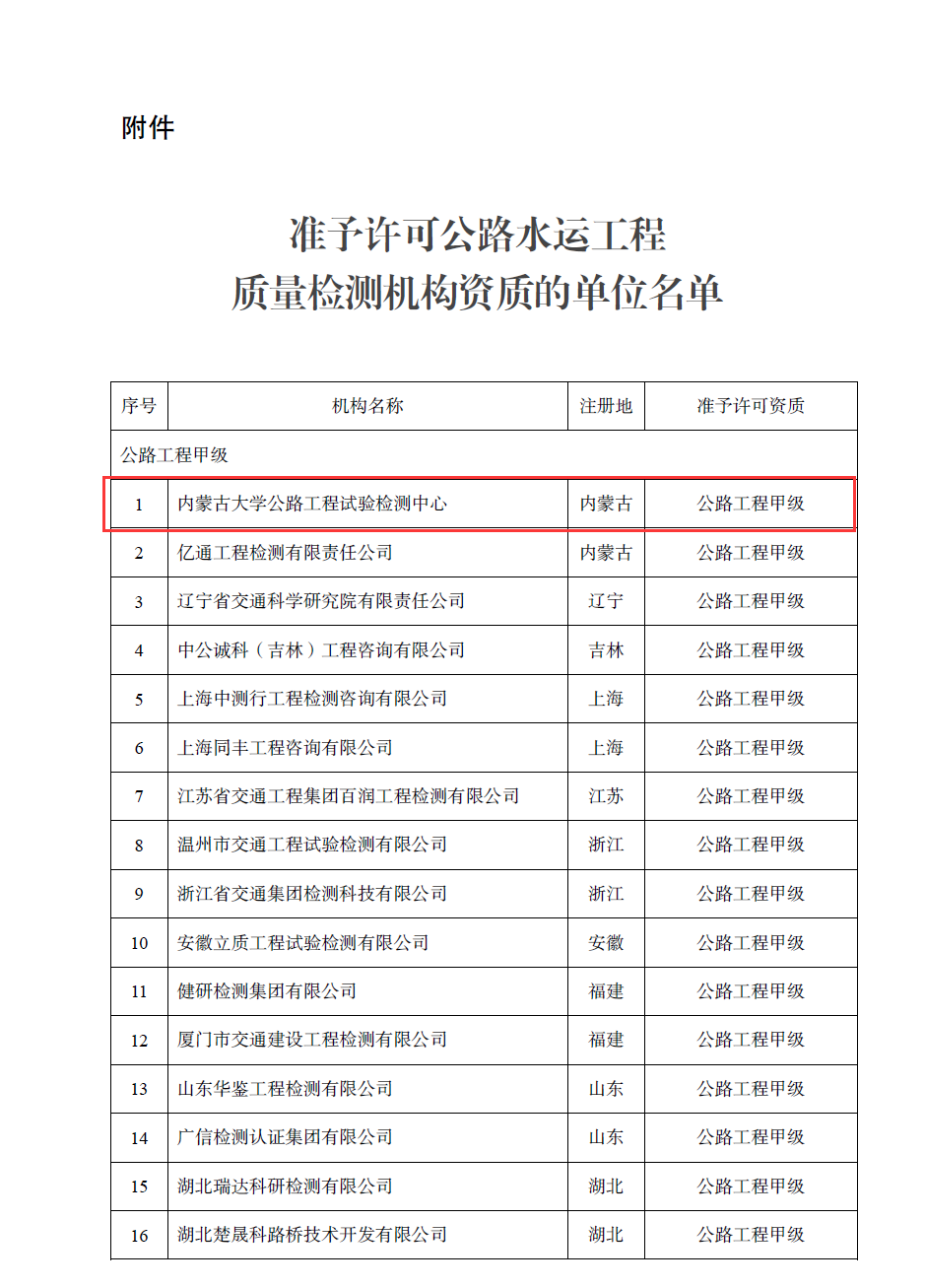 近日,內(nèi)蒙古大學(xué)公路工程試驗檢測中心(以下簡稱 “檢測中心”)成功通過交通運輸部公路工程甲級資質(zhì)延續(xù)審批,充分彰顯了檢測中心在公路工程檢驗檢測領(lǐng)域的深厚積淀與綜合實力。