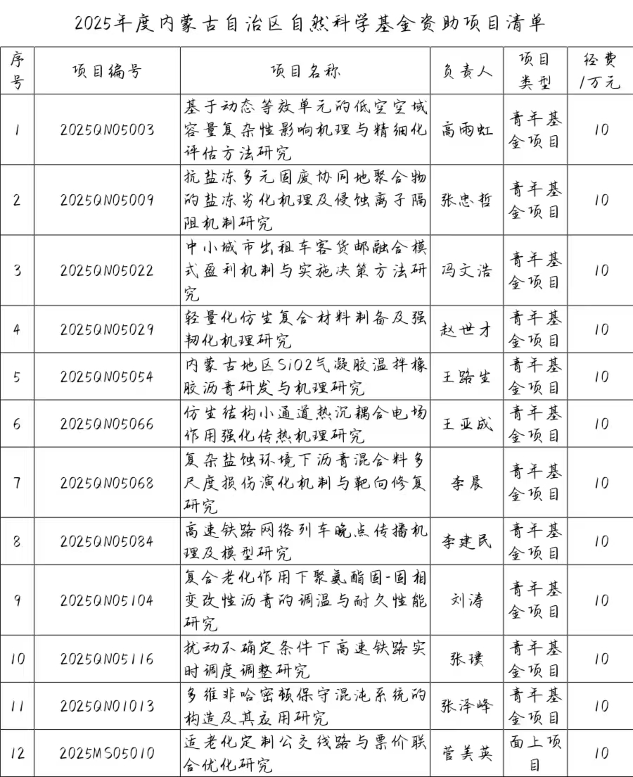 近日,內蒙古自治區(qū)科學技術廳公布了2025年度內蒙古自治區(qū)自然科學基金項目評審結果。我院共申報項目25項,最終獲批22項,項目獲批率達88%。其中,青年基金項目11項,面上項目9項,聯合基金項目2項,總資助金額達206萬元。在項目數量和資助額度方面均實現了新的突破,體現出我院在科學研究與科技創(chuàng)新能力方面的持續(xù)提升與進步。獲批項目清單如下。